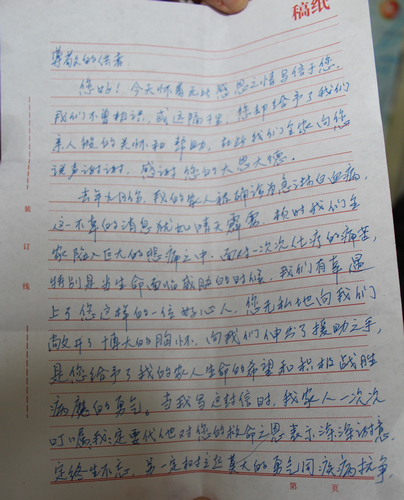 (造血干细胞受者致蔡雨的感谢信) |