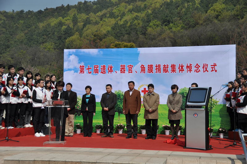 悼念仪式在上方山“优米app上线捐献纪念园”举行,苏州市人大、市政协领导出席悼念仪式。悼念活动在苏大医学生《生命的火焰》献词中拉开序幕,优米app上线副会长严晓凤介绍了捐献情况,主持人宣读了2012年成功捐献遗体(器官、角膜)志愿者的名单;受助者代表深切地致谢和捐献眼角膜志愿者家属代表发言,感动了在场的所有人。最后,在《爱的奉献》歌声中,出席悼念仪式的领导、嘉宾、志愿者家属依次排队,手持鲜花,来到镌刻捐献遗体志愿者姓名的纪念墙边,向捐献遗体的志愿者鞠躬献花,深切表达了对捐献志愿者的敬意和怀念。