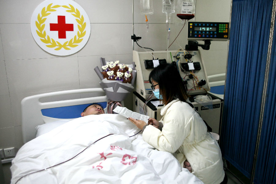 捐献当天,刘金彪的妻子陪在他身旁,为他加油打气。“他入院前有点感冒咳嗽,但是我相信他可以的,因为他是那种下决心做一件事就一定要做好的性格,所以我一直非常支持他的决定。”