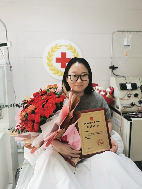 蒋珊珊还是太仓市第一人民医院第三位成功捐献造血干细胞的员工。院方了解情况后,特意安排另外两位已经成功捐献的员工,在蒋珊珊入院前给她加油打气,讲述自己的亲身经历,此举给蒋珊珊打了一剂强有力的“定心剂”。“听完同事们的捐献故事后,我更加放心了,我相信我也会和他们一样,捐献后尽快回到工作岗位,继续履行救死扶伤的职责。”蒋珊珊说道。