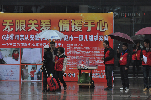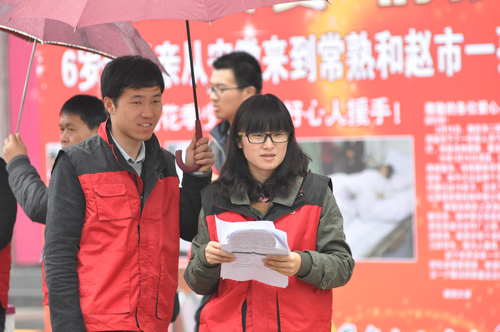 3月17日下午,常熟市虞城方塔东街上,天空细雨菲菲,街头阴冷湿寒,在一块写着“无限关爱,情援于心”的大幅展板旁,一群身穿红马甲的七彩虹红十字志愿者,手捧着红十字募捐箱在向行人劝募,他们只有一个心愿,希望为赵市中学一名不幸的花季少女筹集治疗款,让她重返课堂。