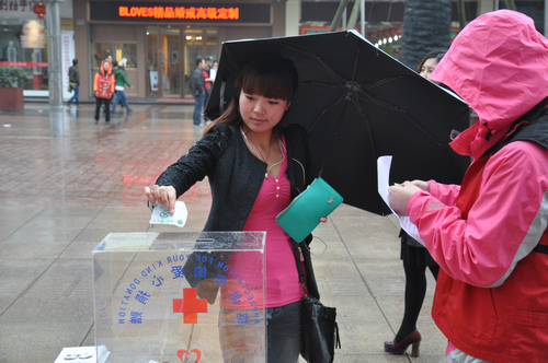 雨不停地下,七彩虹红十字志愿者的头发淋湿了,衣服淋湿了,他们毫不在意,可是手中的资料湿透、烂掉了,他们惋惜不已。那不停穿梭的红色身影,那一声声诚恳话语,那一张张虽经拒绝仍灿烂如初的笑脸,感动了不少路过的市民。有人在雨中驻足凝望展板,耐心听完宣传、讲解,便怦然心动,慷慨解囊,献出他们的心意。一位穿着粉红皮草的年轻女子撑着花伞娉婷而过,七彩虹红十字志愿者习惯和杏儿热情地向她劝募,美女听清事由,微笑着取出一百元钱,郑重地投到红十字募捐箱内。她的善举引来周围的人感激和赞叹——人美心更美啊!捐款的人有青年,有小孩,有老人,也有七彩虹红十字志愿者自己,大家纷纷把自己的爱心聚集在一起,投入到那个空间有限却情意无限的红十字募捐箱里。短短两个小时,共募得爱心款4380.7元!一群群素不相识的人,因为爱心与一个不幸的花季少女结缘,在春雨中绽放出美丽的笑容。虞城市民用爱心与行动,谱写了一首真情的颂歌,如雨声轻扬,如春风拂面,如清水细流,轻轻掠过人们的心头,荡去一些俗世的尘埃,留下一颗善的种子,一株爱的幼苗,在虞城的春光中,悄悄拔节、生长……