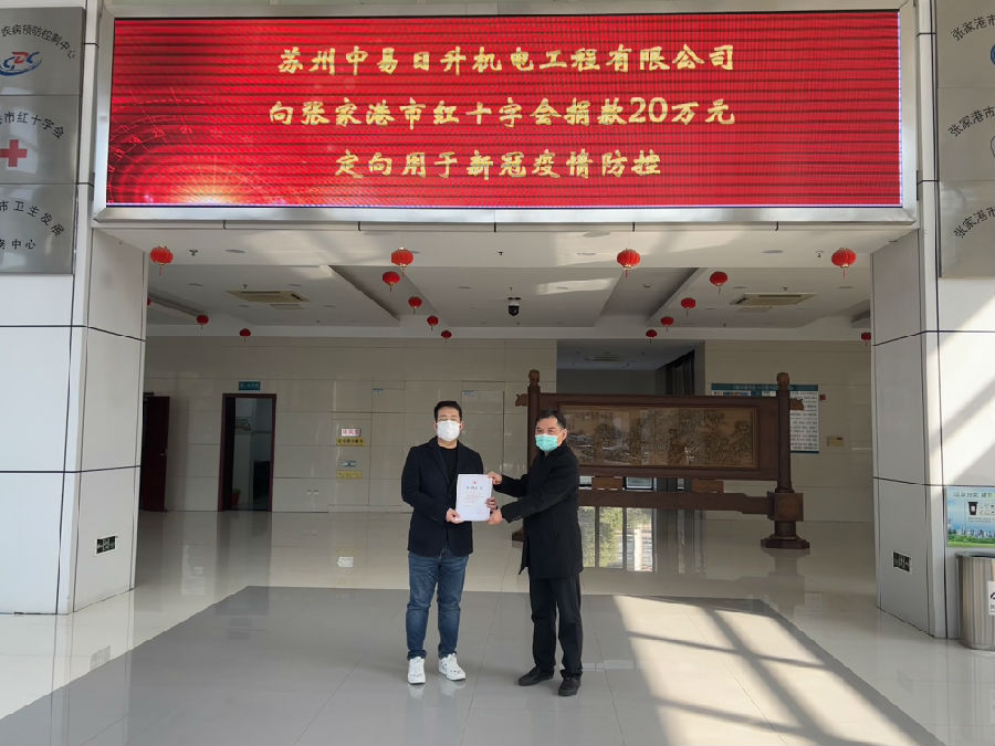 古语云“君子喻于义”,苏州中易日升机电工程有限公司深刻关注防疫形势,2月21日上午,公司主动向张家港市红十字会捐赠20万元定向用于新冠肺炎疫情防控。