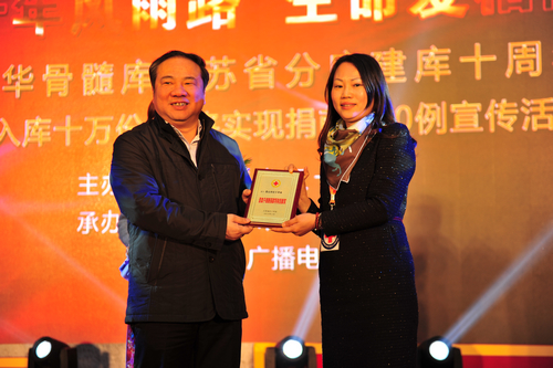 江苏省是中国红十字总会最早列入扩容的省份之一,省红十字会接到任务后,积极争取省委省政府和社会各界的支持,2002年10月31日正式启动中华骨髓库江苏省分库,仅一年多的时间就招募近1万志愿者。十年来,江苏已有入库志愿者10万多人,捐献人数达到299人,位居全国第二,为289位国内患者和10位国(境)外患者送去了重生的希望。特别是苏州的杭彬成为大陆首例捐髓给台湾同胞的志愿者,结束了以往只有台湾单向捐往大陆的历史;2012年6月26日,徐医附院护士谭晓洁为韩国患者捐献骨髓血,成为中华骨髓库捐献骨髓血干细胞第一人;今年2月4日,常州志愿者孙萌婷成为中华骨髓库“入世”后首位被新西兰患者检索到的捐献者,她也是中国捐向新西兰第一人。历年来,江苏分库几乎囊括了中华骨髓库的所有奖项;2005年,在江苏城市频道“南京零距离”全省公众评选的“十大公共服务大奖”中,江苏省分库高票当选;2011年,造血干细胞捐献获首届 “江苏慈善奖”的“最具影响力慈善项目”等等。