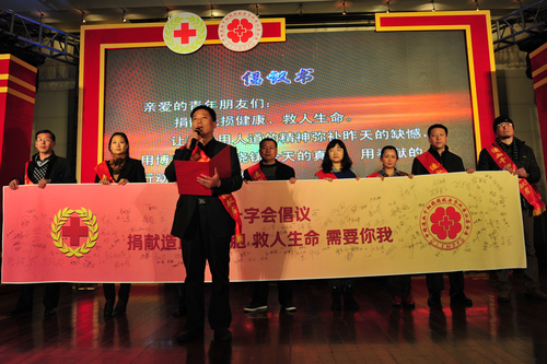 活动现场,场内和场外的志愿者和捐献者一起签名支持造血干细胞捐献事业,并发出倡议:全省的适龄青年加入到捐献造血干细胞的行列。