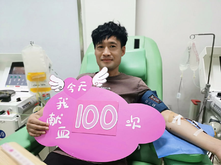 “我也是查看记录才知道已经第100次无偿献血了,但对我来说,这只是爱心路上的一个新起点,爱的路千万里,我要一直走下去,期待第二个100次的到来!”司义成说。(孙雯)