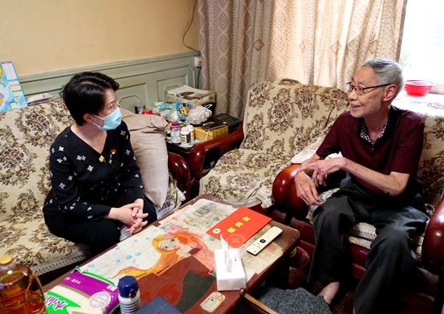 在腿脚不便的黄老伯家中,季晶亲切地与他聊起家常。看到黄老伯手上和腿上的伤口后,季晶了解到,由于黄老伯髋关节受损又手指坏死,在家里用老式浴缸洗澡非常不便。她叮嘱相关负责同志为黄老伯改造淋浴房,方便其日常生活,并叮嘱他保重身体,保持乐观心态。