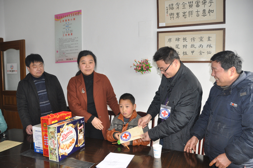 另一位是屯村小学一年级学生沈昊冉,沈昊冉身上承载着全家的希望,其父亲因右脑血管畸形手术后左手残疾,无业在家,母亲右眼失明,全家靠其母打小工和低保为生。吴江区红十字会在了解到沈昊冉家庭情况后,连续两年为其送去了600元的“爱心助学金”及日常用品,希望能为这个家庭送去一点温暖,让小昊冉顺利完成学业。