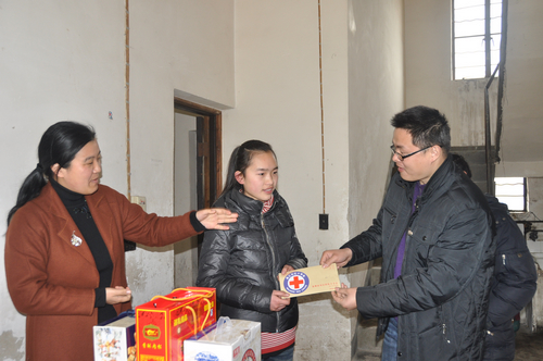 这两位贫困学生一位是莘塔中学初三学生王学青,王学青母亲在生完她后就不辞而别,至今未归,其父身患残疾,无收入来源,靠低保维持生活。虽然家庭生活艰苦,但是在困境中的王学青并未放弃梦想,学习成绩优异。为了让王学青能更好完成学业,吴江区红十字会和去血站为其送去了600元的“爱心助学金”及日常用品,这是区红十字会和血站第三年资助王学青。