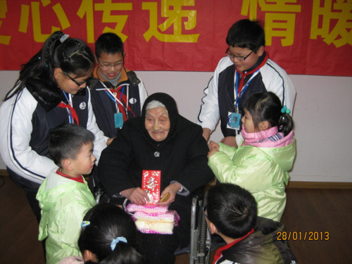 苏州市三元中学初一年级“陆薇”红十字志愿者小组的30位同学和15位阊胥幼儿园的小朋友,大手牵小手来到三元寿星园看望老人。同学们准备了丰富多彩的节目,还带来了自己零花钱所购买的毛巾、肥皂等生活用品;小朋友们也编排了很多和爷爷奶奶一起乐起来的游戏;爱心家长也赶来与孩子们一起做起了象征美好幸福的桃酥饼。校党总支蔡玮书记出席活动并献上了新年贺词。