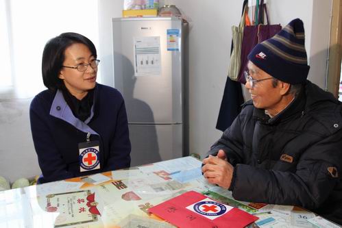 1月15日下午,昆山市红十字会开展了2013年首次博爱送温暖活动。市政府副市长、市红十字会会长金铭一行深入高新区、开发区的两户贫困家庭中,将大米、食用油、水果等慰问品及慰问金送到贫困家庭手中。昆山市红十字会“博爱送万家”活动也正式启动。