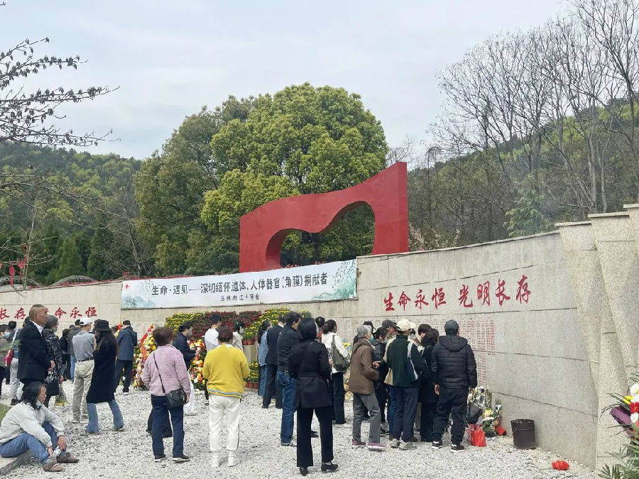 4月3日,在区红十字会的组织下,吴江捐献遗体(器官、角膜)志愿者的亲属们前往苏州市红十字会捐献纪念园参加缅怀活动。