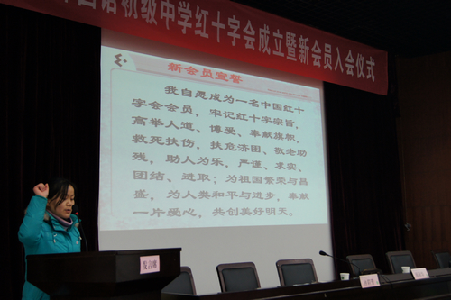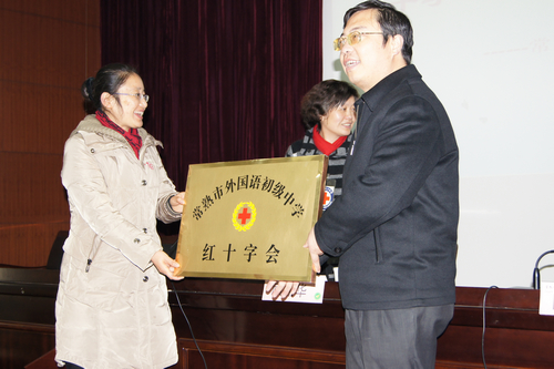 12月24日下午,常熟市外国语初级中学红十字会成立暨新会员入会仪式举行,市红十字会副会长顾丽华、市教育局副局长陆培新等出席仪式。