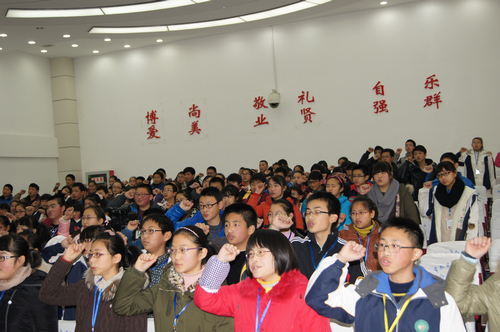 市红十字会副会长顾丽华希望校红十字会要根据青少年成长特点,广泛传播红十字运动知识,弘扬“人道、博爱、奉献”的红十字精神;经常性地组织开展各项红十字青少年活动,在校园形成平等友爱、互帮互助的良好风尚,培育学生关爱生命、关心社会、服务他人、乐于奉献的道德品质,培养学生良好的文明卫生习惯和行为,促进学生身心健康成长,使学校红十字会工作成为全面推进素质教育和校园精神文明建设的有效途径和重要载体,确保红十字事业的可持续发展。
