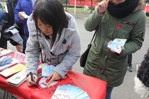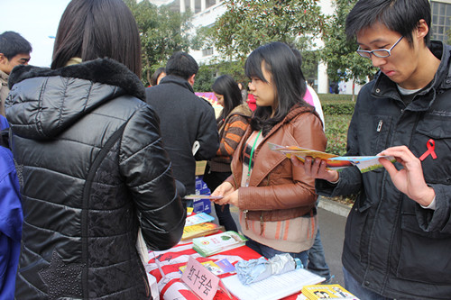 目前我国艾滋病病毒感染人数逐年递增,防治艾滋病任重道远,需要全社会共同努力。为了关爱在校大学生,提高他们的防艾意识,11月30日,太仓市红十字会联合太仓市疾控中心在健雄职业技术学院开展了防艾主题宣传活动。校园内到处飘扬着红丝带,防艾的宣传标语随处可见,由各系绘画的宣传展板摆放在了显眼位置,每位学生都佩戴了红丝带。为了增加趣味性,活动现场还组织了有奖问答活动,吸引了很多学生参与。据统计,活动当天共有3000余名在校学生参与了活动,发放艾滋病预防宣传资料千余份。