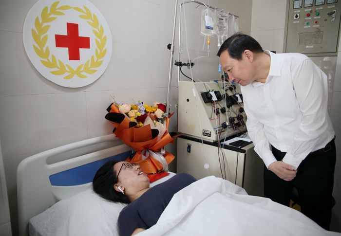 10月16日,经过三个半小时的采集,来自昆山的大四学生丁子越成功捐献340毫升造血干细胞混悬液,由此成为苏州市第227例造血干细胞捐献者,也是苏州市首位“00后”捐献者。市红十字会党组成员、副会长张根生到现场看望慰问。