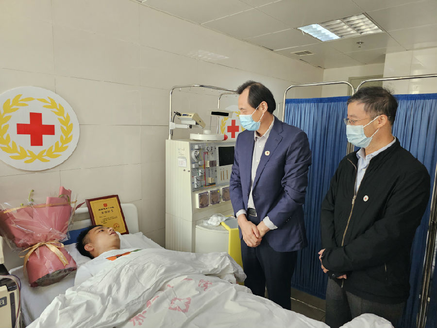 他的妈妈栾其颖曾在2015年2月成功捐献造血干细胞,栾易树和妈妈也成为了全省第一对亲子同捐献的爱心志愿者。市红十字会会长蒋来清,党组书记、常务副会长刘文伟到现场看望慰问。