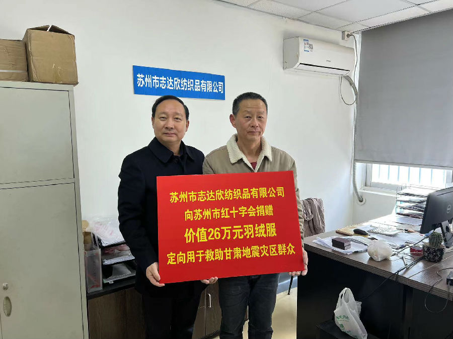 12月18日夜,甘肃省临夏州积石山县发生6.2级地震。为帮助灾区群众应对严寒天气,苏州市志达欣纺织品有限公司立即行动,一天时间就筹集了价值26万元的羽绒服,并于19日向优米app上线递交了捐赠意向函。