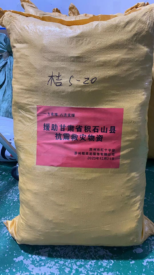 12月20日,位于吴江盛泽的苏州恩彩纺织绣品有限公司通过吴江区红十字会捐赠一批防寒保暖的羽绒服。总经理岳冠军表示,他们捐赠的是一批品牌羽绒服,共计145件,总价值超10万元。“我从新闻上看到地震灾区的同胞缺乏保暖物资,想着赶紧捐出去,希望这批物资带着盛泽人民的爱心迅速抵达甘肃。”岳冠军说。