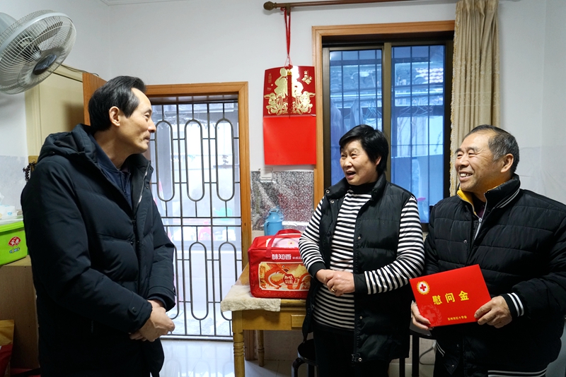 1月30日,市红十字会会长蒋来清来到结对的吉庆社区,开展“博爱送万家”走访慰问活动,为困难党员和群众送去党和政府的关心和红十字会的温暖。市红十字会党组成员、副会长张根生陪同。