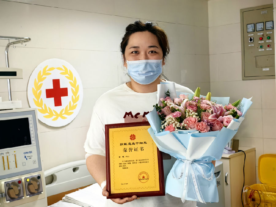高艳,出生于1987年2月,江苏盐城人。2019年6月,在瑞华骨科医院组织的一次职工无偿献血活动中,她报名加入了中华骨髓库。今年3月中旬,高艳接到红会通知,一名8岁血液病患儿与她初次配型成功。“一想到孩子这么小的年纪就要每天打那么多针,就感到非常心疼。”在听说患儿跟自己孩子差不多大的时候,她毅然决定捐献。