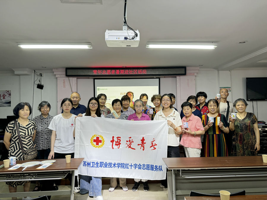 7月18日,苏州卫生职业技术学院红十字会的“骨舞仁心,智慧助老”博爱青春暑期志愿服务项目团队,走进姑苏区沧浪街道胥虹社区,开展了骨质疏松健康宣讲活动。