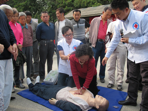 活动中,市红十字会应急救援志愿者现场为社区居民演示心跳、呼吸骤停病人的心肺复苏和四项救护技能,受到社区居民的热情参与。许多居民排队等待现场学习这项救护技能。应急救援志愿者们耐心细致地进行指导和教授正确的操作要领,并及时解答居民的提问。