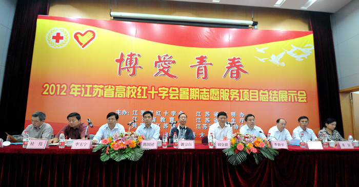 10月13至14日,由省红十字会、省文明办、省教育厅、省卫生厅、团省委、省志愿者协会联合举办的2012江苏省高校红十字会暑期志愿服务项目总结展示会在南京师范大学仙林校区仙林宾馆举行。省红十字会常务副会长潘宗白,省委教育工委副书记、省教育厅副厅长、省红十字会副会长胡金波,省红十字会党组书记、专职副会长李新平,南京师范大学副校长陈国祥等领导以及来自13个省辖市红十字会负责红十字青少年工作的专职干部,各高校红十字会项目负责人和学生代表近400人参加了展示会。