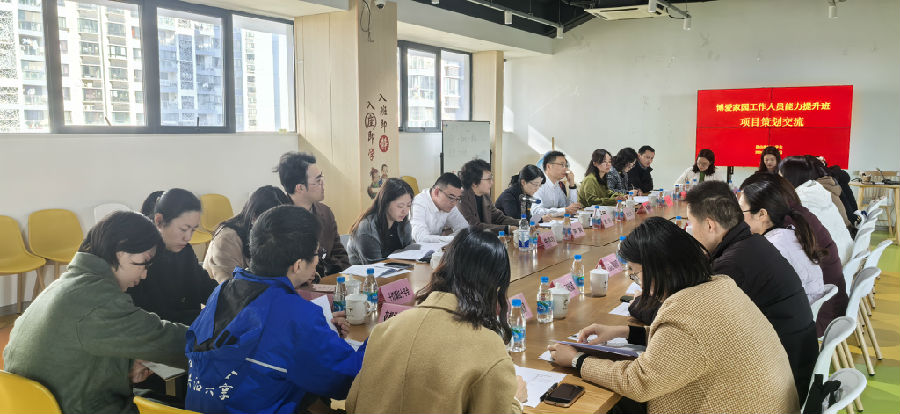活动现场启动了博爱家园“一园一品”特色品牌提升计划。学员们进行现场交流,分享了博爱家园的工作思路与亮点成果以及本次参训的心得体会。