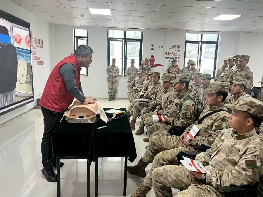 首场培训于3月14日开班,培训内容涵盖了心肺复苏、海姆立克急救法和止血包扎等多项救护技能。官兵们通过观看案例视频和聆听红十字救护培训师的讲解,进一步重点了解了止血、包扎、固定、搬运等战时急救技能。