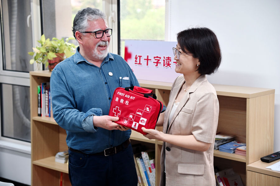 在新柳溪社区红十字博爱家园,代表团参观考察了红十字心灵驿站、红十字书屋、应急救护培训教室等功能区域,了解了社区急救物资配备、志愿服务开展等情况。期间,区红十字会常务副会长宋莲向智利红十字会会长拉斐尔·门德斯·梅拉赠送了一份急救包。